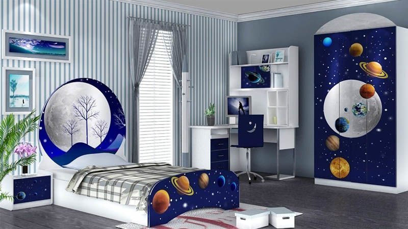 Phòng ngủ được thiết kế cực kỳ cá tính theo chủ đề hành tinh mà bé yêu thích