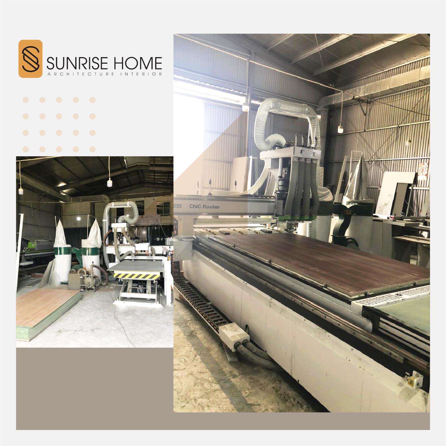 4. Sản xuất nội thất: Nhằm phục vụ khách hàng một cách toàn diện và chu đáo nhất từ A-Z, Sunrisehome đã mở ra xưởng gỗ sản xuất tại Hà Nội chuyên về gỗ công nghiệp với quy mô lớn cùng đội ngũ thợ lành nghề , chuyên nghiệp và nhiều năm kinh nghiệm nhằm đảm bảo chất lượng cũng như tiến độ với khách hàng. Các sản phẩm nội thất bao gồm: Tủ bếp, tủ rượu, Kệ tivi, kệ trang trí, tám vách, giường, tủ quần áo, giá sách,…..