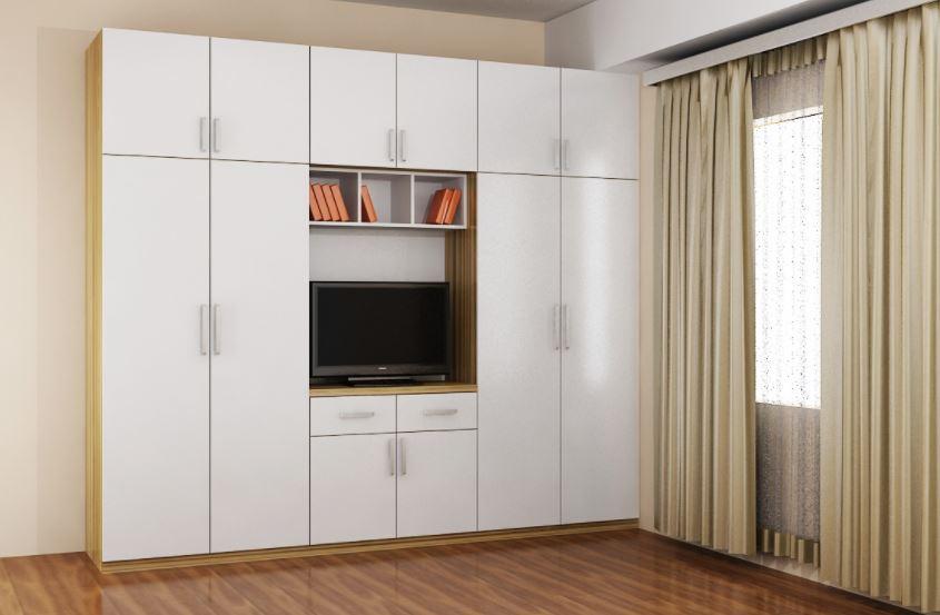 Tủ quần áo kết hợp kệ ti vi là phương án tuyệt vời vừa trang trí giúp căn phòng sang hơn vừa tận dụng để phục vụ cuộc sống.
