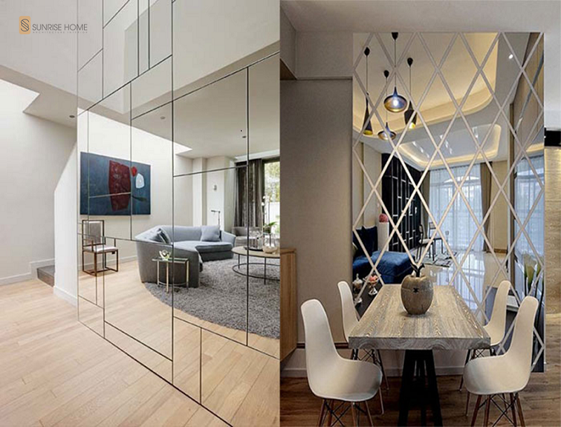 Kết hợp nhiều loại gương cũng là cách hay để tạo vẻ vương giả cho căn phòng của bạn. Có thể kết hợp đặt gương đối xứng trong phòng khách, hoặc bố trí tự do theo sở thích, thẩm mỹ của chủ nhà, sao cho hợp lý.