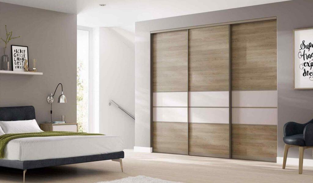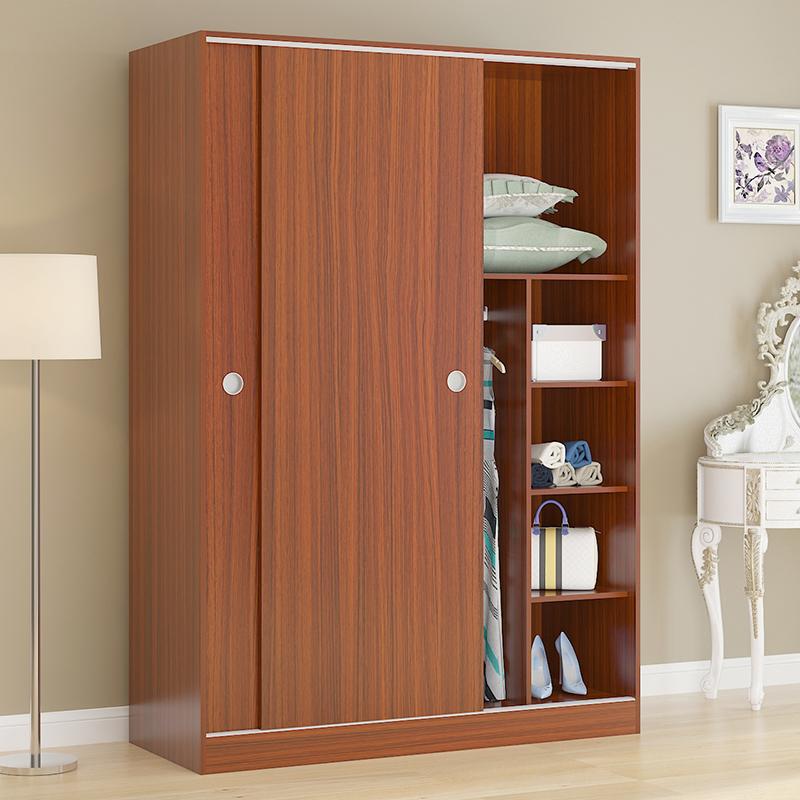 Mẫu tủ quần áo cửa lùa có nhiều ngăn, màu nâu gỗ ấm áp.