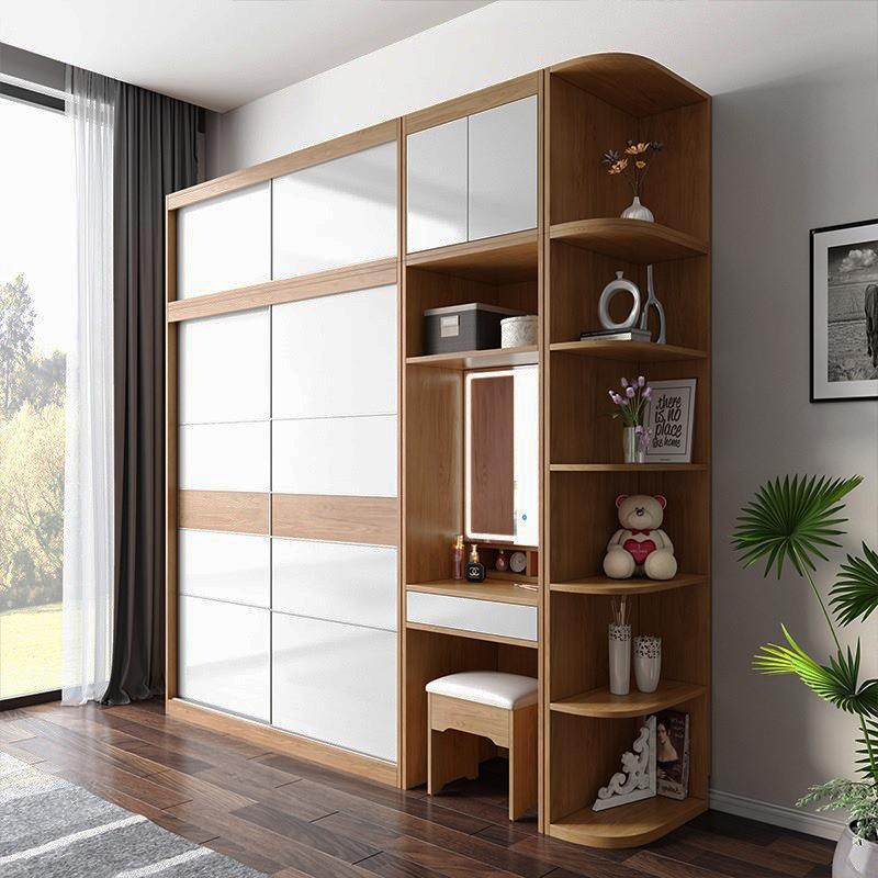 Mẫu tủ quần áo cánh trượt âm tường kết hợp kệ trang trí
