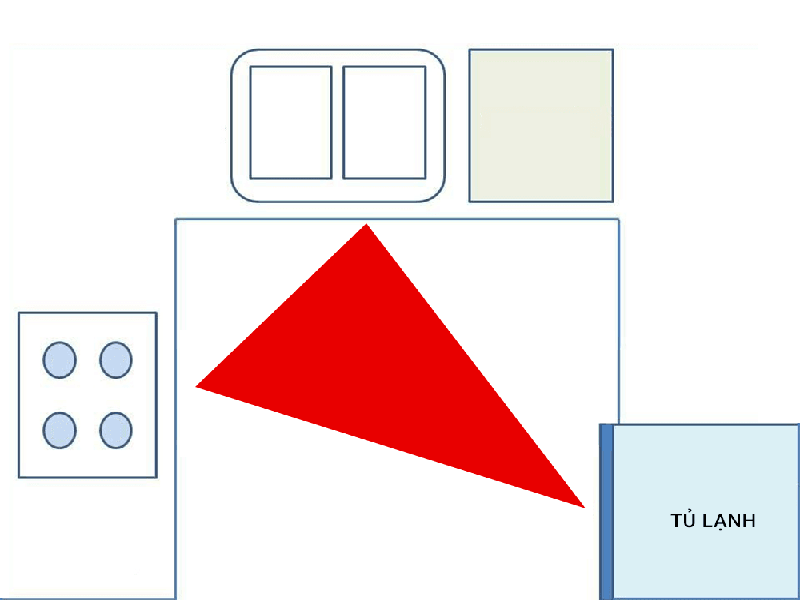 Tam giác bếp là ba vị trí mà người nội trợ di chuyển nhiều nhất trong khu vực bếp chính là bếp nấu, chậu rửa bát và tủ lạnh. Nguyên tắc tam giác trong bếp xác định ba điểm này và sắp xếp vị trí cho chúng ta có thể di chuyển trong vòng tam giác thoải mái nhất, , vừa thuận tiện công năng và đáp ứng tính thẩm mỹ tiếp đến mới quan tâm đến cách bài trí nội thất.