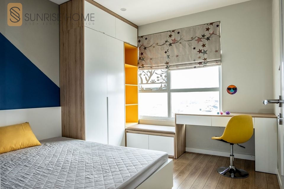 Một phòng ngủ khác có sự phối hợp hài hòa giữa các màu sắc trẻ trung giúp căn phòng luôn tràn đầy năng lượng.