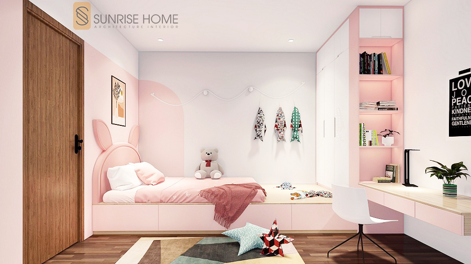 Phòng ngủ cho bé được bố trí đầy đủ công năng, phong dáng nội thất, màu sắc nhằm đảm bảo tính hài hòa cho căn phòng.