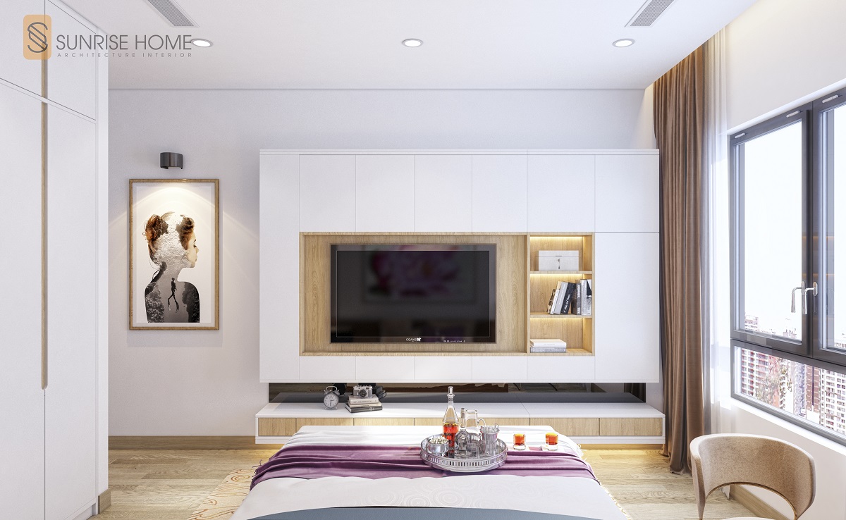Phòng ngủ của người lớn đem lại cảm giác thoải mái khi vừa có ti vi, vừa có cửa sổ thông thoáng có thể ngắm cảnh bên ngoài